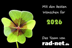 Das Team von rad-net wünscht allen ein gutes und frohes neues Jahr, viel Erfolg und vor allem Gesundheit. Wir freuen uns, Ihnen und Euch auch im Jahr 2026 wieder mit dem gewohnt guten Service zur Verfügung zu stehen. Mehr...