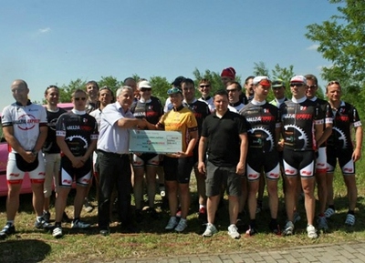 Mit großer Freude hat der HALLZIG EXPRESS am 19.05.2013, dem Tag der neuseen classics, dem Kinderhospiz Bärenherz eine Spende von über 3.000 EURO überreicht. "Die Unterstützung des Kinderhospiz Bärenherz in Leipzig ist den Mädels und Jungs aus unserer Truppe ein besonderes Anliegen. Und in den letzten drei Jahren haben wir wirklich alle fleißig gesammelt. Aber nicht nur ein Teil des jährlichen Mitgliederbeitrages floss in den Spendentopf, auch ein Teil der Verkäufe von Rennrad- und Freizeitbekleidung des Teams sowie den Bargeldspenden bei Feiern und sonstigen Treffen findet sich in der Summe wieder.", so Oliver Polz, der im Beisein vieler Mitglieder des Hobbyradsportteams den Scheck an den Vorstand vom Kinderhospiz überreichte.
