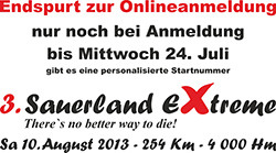 Daher unter www.sauerland-extreme.de zunächst die Vorabinfos durchlesen und dann sofort auf Online-Anmeldung klicken und anmelden.