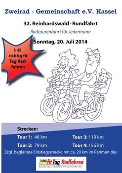 Die Zweirad-Gemeinschaft e.V. Kassel veranstaltet am 20.07.2014 ihre 32. Reinhardswald-Rundfahrt.