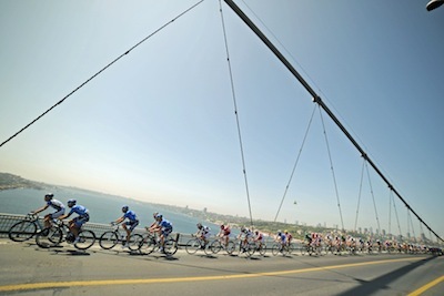 Nach dem Start in Europa führte die Strecke das Feld über den Bosporus nach Asien. Foto: Mario Stiehl